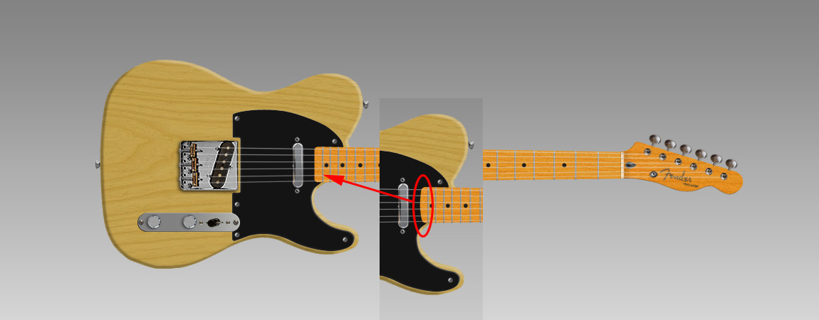 Added the Tele square heel and 22fret overhang straight cut shapes